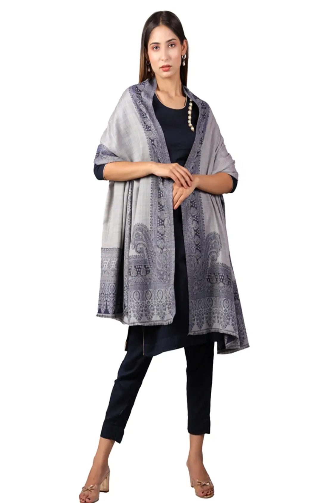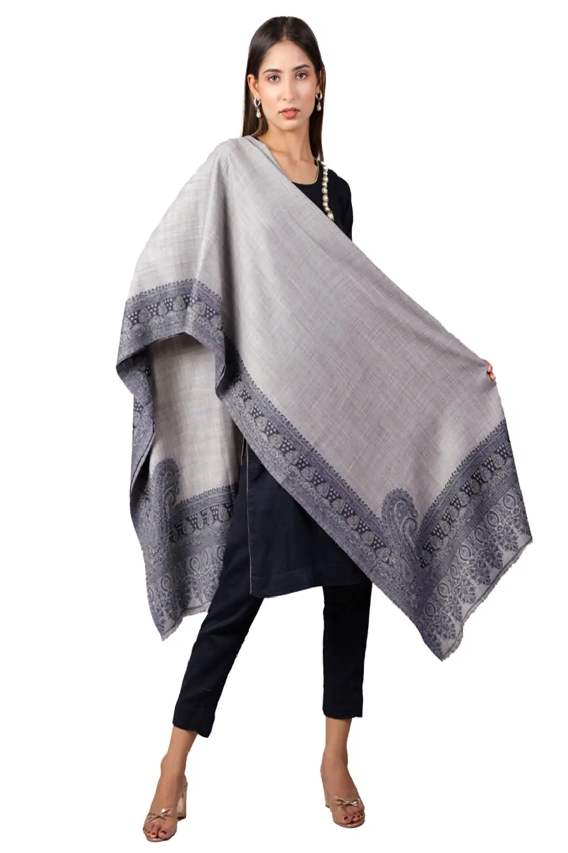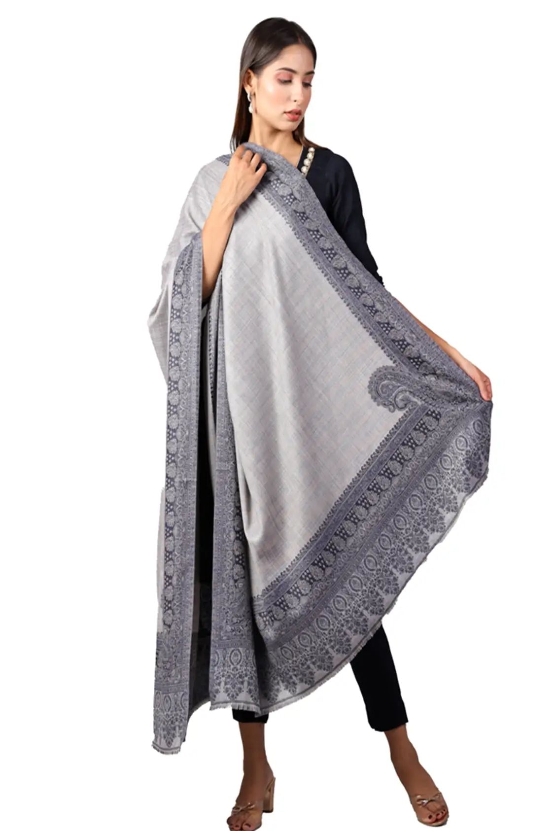 Shah-e-Toosh Kashmiri Shawl For Women, Lightweight Shawl With Four Side Border & Paisley Design