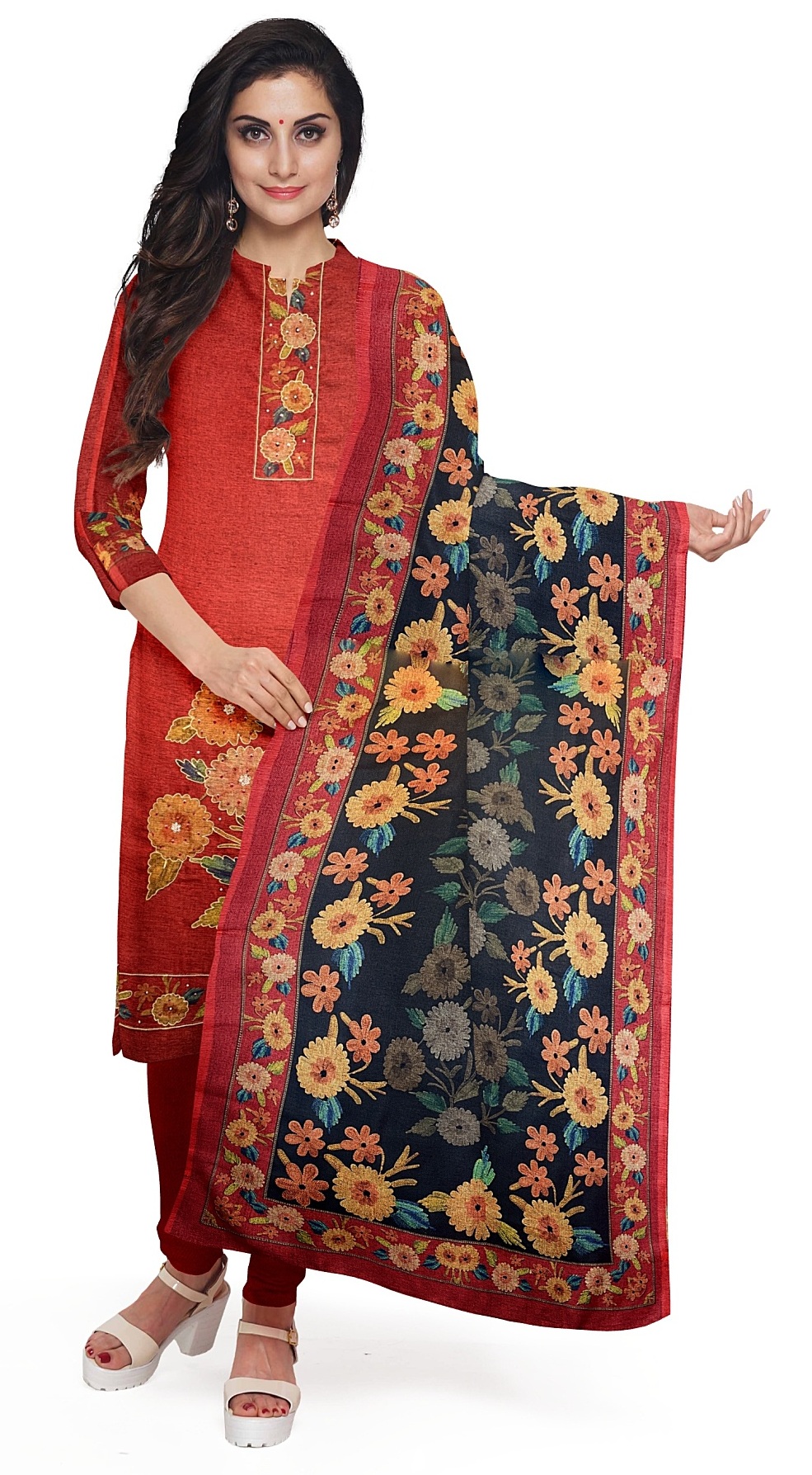 - Starlit Sparkle: The classic French knots are paired with shimmering Sequins and precise Stone Work, scattering light across the fabric and embodying the ‘Noor’ (light) of the collection.