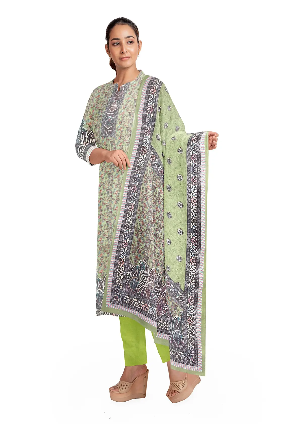 Shah-e-Toosh Winter Pashmina Suit: Digital Print Unstitched Salwar Kameez with Shawl